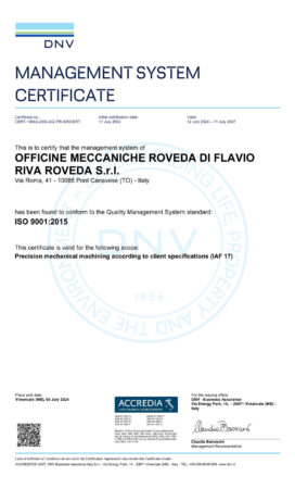 Roveda è certificata secondo la normativa UNI EN ISO 9001:2015, a testimonianza di un sistema di gestione orientato al miglioramento continuo e alla soddisfazione del cliente.